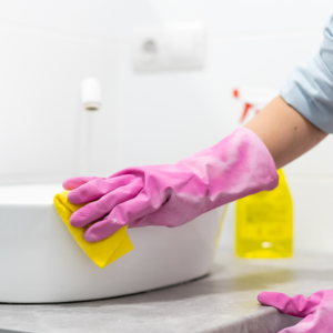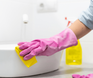 Inside the shower we scrub, scrub, srub. And do it again until it is cleaned exceedingly well